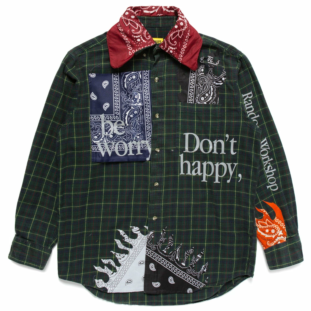 Market RANDOM WORKSHOP DON’T HAPPY BE WORRY PATCHWORK GREEN FLANNEL SHIRT